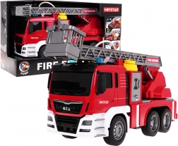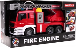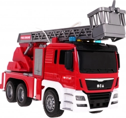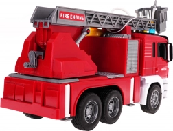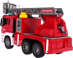 Auto wykonane jest z wytrzymałego plastiku, ma gumowe opony dla lepszej przyczepności i napęd cierny, który umożliwia łatwą jazdę bez baterii. Drabinę z koszem można ręcznie podnosić, opuszczać i wysuwać, a wysuwny wysięgnik obraca się o 360°. Nie brakuje bocznej klapy z dostępem do węża strażackiego, 4 wysuwnych podpór stabilizujących oraz otwieranej klapki przy wysięgniku.