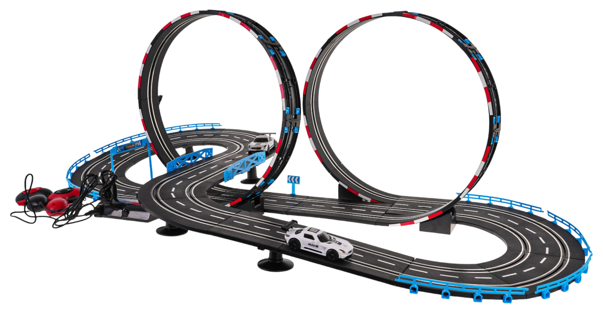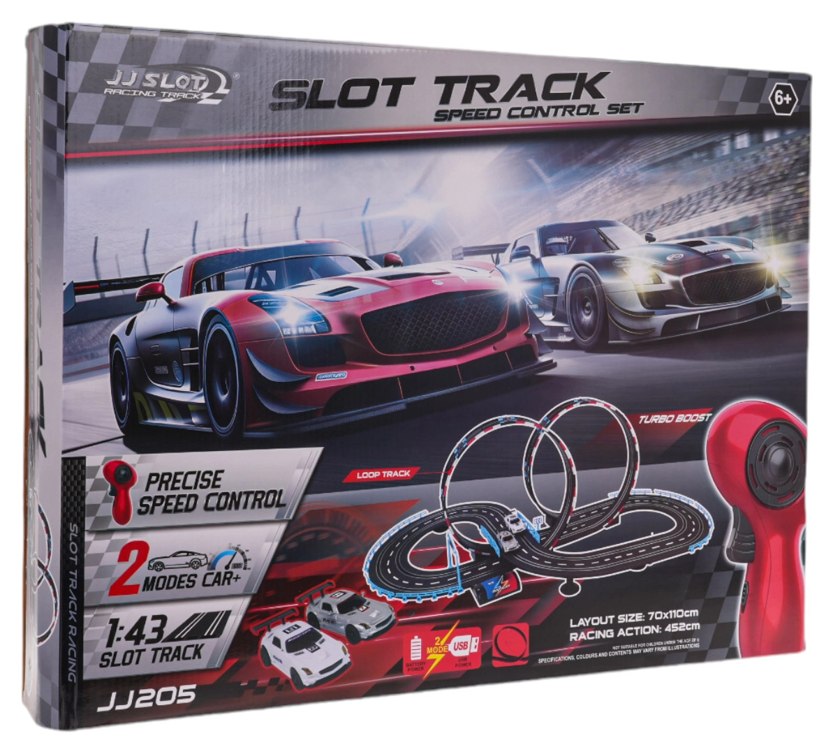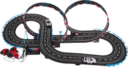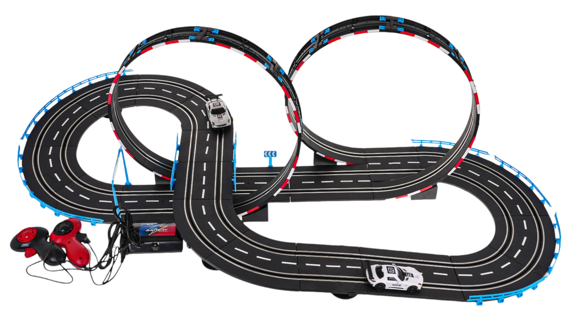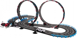 Poszczególne klocki konstrukcyjne pozwolą zbudować tor z ostrymi zakrętami, spiralami i prostymi odcinkami, wszystko to dla maksymalnej zabawy i zwiększenia emocji podczas całej gry. Zestaw zawiera dwa pojazdy. Zestaw jest idealny dla dzieci powyżej 6 lat. Zabawka jest zasilana bateriami typu 6 x AA 1,5 V (baterie nie są częścią zestawu). .. Funkcje zestawu . - odpowiednie dla dzieci powyżej 6 lat, .- wykonane z lekkich, wysokiej jakości materiałów, .- tor zawiera proste odcinki, pętle 360°, zakręty, spirale, .- skala 1:43, .- tor może być podłączony do sieci lub zasilany bateriami, .- 2 prędkości. . .