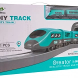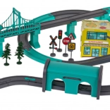 Kompletny zestaw z torami, stacją, mostem, tunelem i akcesoriami pozwala budować wciąż nowe warianty trasy i scenariuszy zabawy.