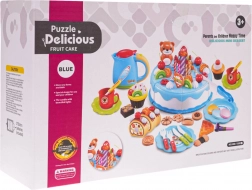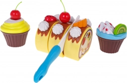 Dzieci mogą dowolnie dekorować tort i roladę owocami, polewami i świeczkami, serwować na talerzykach i urządzać własne przyjęcia. Bogate akcesoria wspierają zabawę społeczną, komunikację i wyobraźnię.