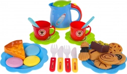 Talerzyki, sztućce, kubeczki, czajniczek, babeczki, ciasteczka i rolada – wszystko do serwowania i wspólnej zabawy z przyjaciółmi.
