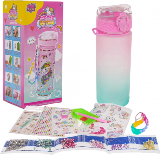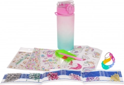 Materiał butelki jest bez BPA i odpowiedni dla dzieci. W opakowaniu znajdziesz także pętelkę/sznurek do wygodnego noszenia, narzędzie do aplikacji kryształków oraz czytelne szablony. Świetny pomysł na prezent dla małych miłośników jednorożców.