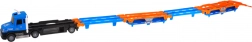 Po rozłożeniu ciężarówka tworzy dwupoziomowy tor o długości do 140 cm, idealny do wyścigów z dołączonymi autkami.