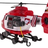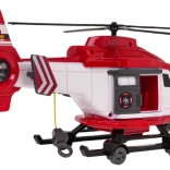 Helikopter ma otwierane boczne drzwi, ręcznie obsługiwany hak z koszem transportowym oraz wirniki, które można wprawić w ruch. Przednie światła LED oraz autentyczne dźwięki lotu i alarmu nadają każdej misji emocji. Zabawka zasilana bateriami 3× AG13 (w zestawie), więc jest gotowa do użycia od razu.