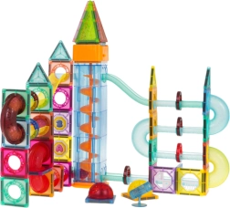 Przezroczyste rurki, magnetyczne kształty i unikalne elementy pozwalają dzieciom projektować oryginalne trasy, które wspierają wyobraźnię i logiczne myślenie.