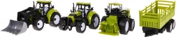 Dwa traktory, kombajn i przyczepa z autentycznymi detalami wspierają kreatywną zabawę i rozwój motoryki. Idealne dla małych fanów techniki rolniczej.