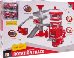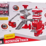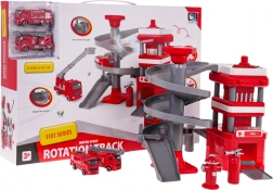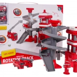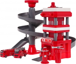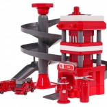 Strażacka stacja z wielopoziomową spiralną rampą, pozwala strażackim samochodom zjeżdżać w dół, rozwijając tym samym umiejętności motoryczne dzieci.