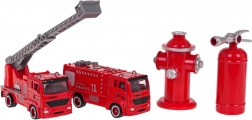 W skład zestawu wchodzą dwa metalowe samochody strażackie, z których jeden posiada funkcjonalną drabinę, która się podnosi, opuszcza i wydłuża. Zestaw zawiera także hydrant i gaśnicę, wspierając realistyczne scenariusze zabaw.