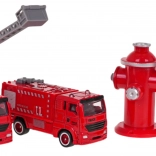 Zestaw zawiera metalowe samochody strażackie i wyposażenie jak drabina i pompa, które wspierają realistyczną grę o działaniach strażackich.