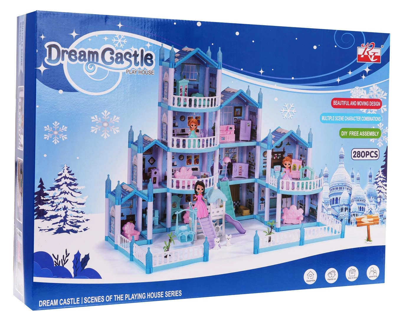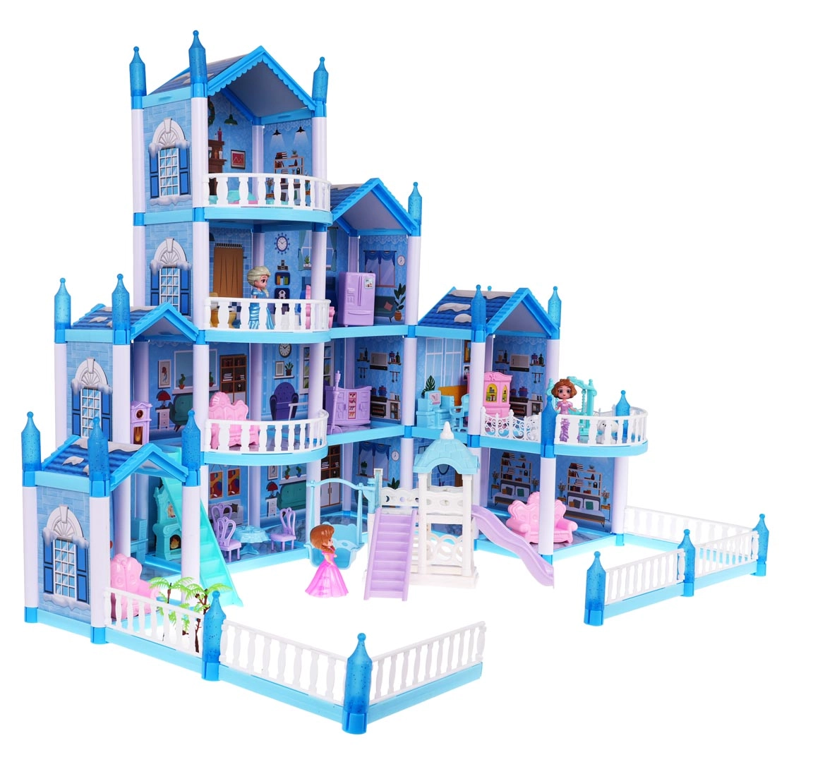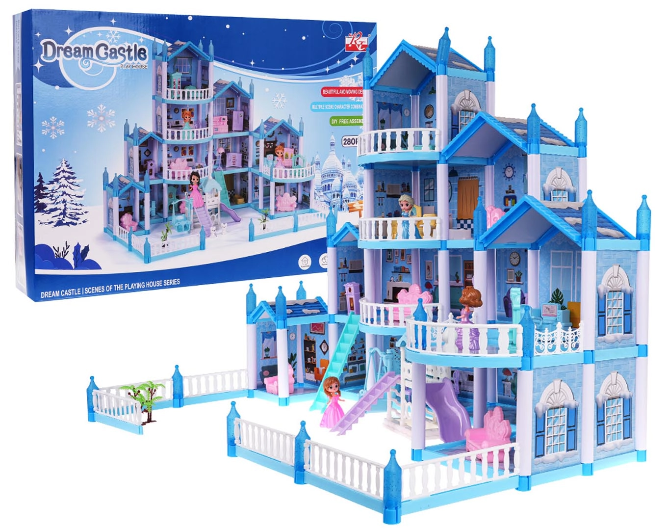 Przestronny, czteropiętrowy domek obejmuje różne pomieszczenia i balkony, co pozwala dzieciom tworzyć niezliczone scenariusze zabaw.