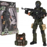 Figurka żołnierza z akcesoriami dla dzieci od 3 lat oferuje realistyczną zabawę o tematyce wojskowej. Ta ruchoma figurka jest wyposażona w wiele akcesoriów, co podnosi poziom zabawy.