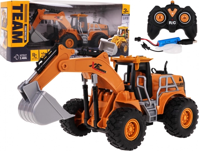 Rozkoszuj się zabawą z RC koparką, która została wyposażona w efekty świetlne i dymne, aby zabawa była jak najbardziej realistyczna. Ten model wykonano z najwyższej jakości plastiku i zaprojektowano w skali 1:22. Koparka może jeździć we wszystkich kierunkach, a jej ramię można manualnie poruszać w górę i w dół.