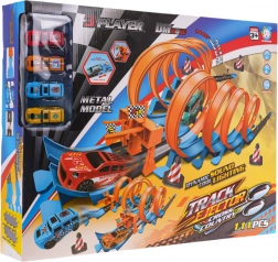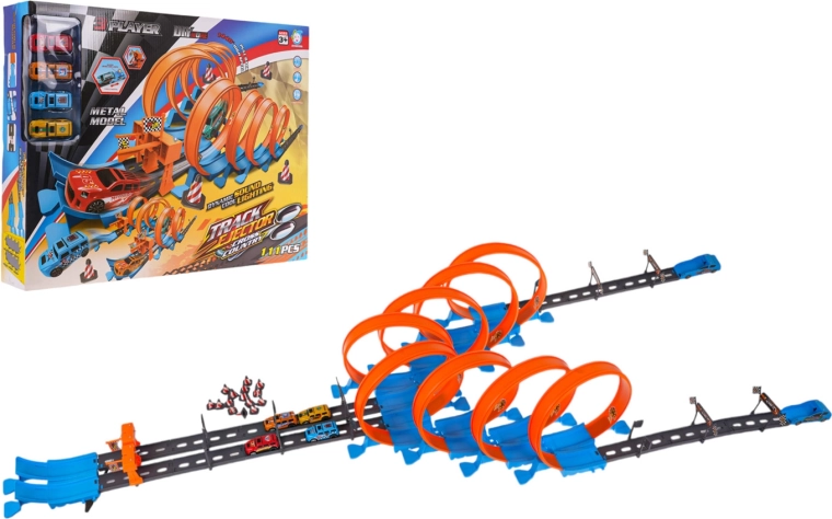 Ekstremalny tor wyścigowy z funkcją świateł i dźwięku to kompletny zestaw rozrywkowy dla małych entuzjastów motoryzacji. Zawiera 111 części, pętle torów i cztery metalowe modele samochodów dla dynamicznej zabawy.