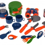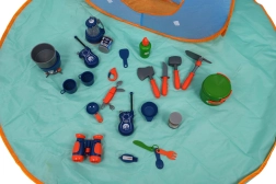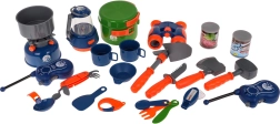 Z 29 elementami zestaw zawiera wszystko, co potrzebne do świetnej zabawy w biwak, w tym kuchenkę, lampę i naczynia.