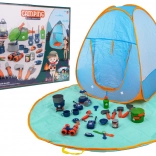 Ten wyjątkowy zestaw kempingowy to doskonały dodatek dla małych odkrywców, którzy uwielbiają poznawać przyrodę. Idealny dla dzieci od 3 lat, zawiera namiot, matę, zabawki i funkcjonalne akcesoria, które pozwalają dzieciom odgrywać scenki prawdziwego biwakowania.