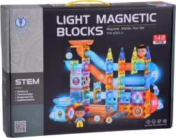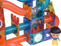Magnetyczne świecące kostki 3D – duży tor kulkowy, 142 elementy