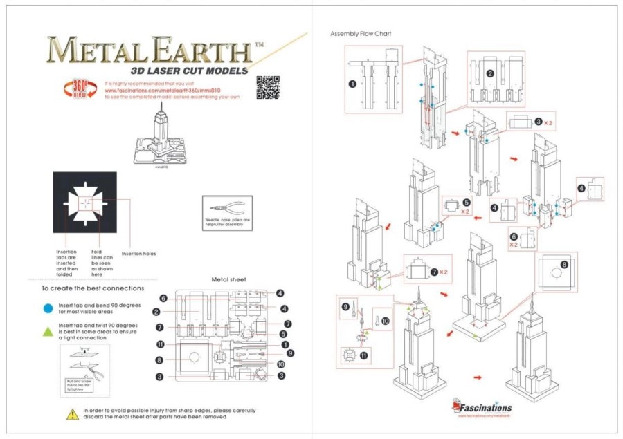 Montaż odbywa się bez kleju – elementy łączy się za pomocą zaczepów, które po prostu zaginasz małymi szczypcami. W zestawie znajduje się 1 stalowy arkusz z elementami oraz szczegółowa instrukcja, narzędzia nie są dołączone. Rekomendowane od 14 lat.
