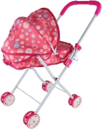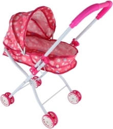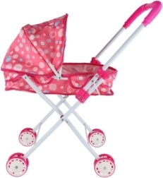 Podaruj swojej małej mamie piękny głęboki wózek dla lalek z miękką materiałową gondolą. Dzięki lekkiej metalowej konstrukcji i wytrzymałym kółkom dzieciom łatwo się nim manewruje w domu i na zewnątrz. Materiałowe elementy w różowych wzorach nadają mu figlarny charakter, a staranne wykonanie gwarantuje długą trwałość.