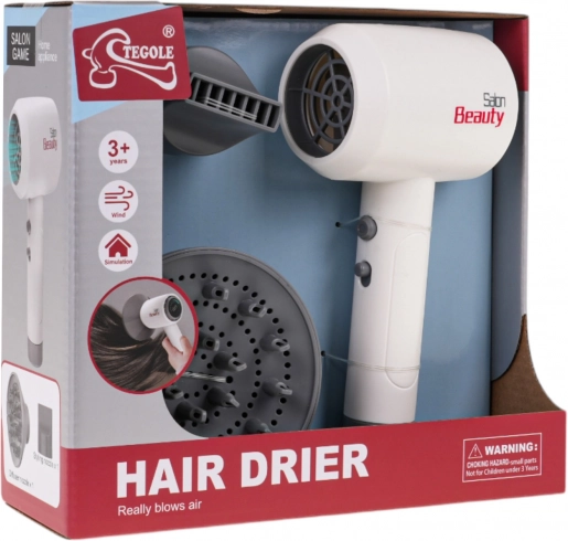 Interaktywna suszarka to autentyczna replika prawdziwej suszarki z regulowanym przepływem powietrza i realistycznymi dźwiękami. Przeznaczona dla dzieci od 3 lat, wykonana z wysokiej jakości materiałów, co gwarantuje bezpieczne i długotrwałe użytkowanie. Zestaw zawiera wymienne nasadki, które pozwalają na zróżnicowane kierowanie strumienia powietrza.