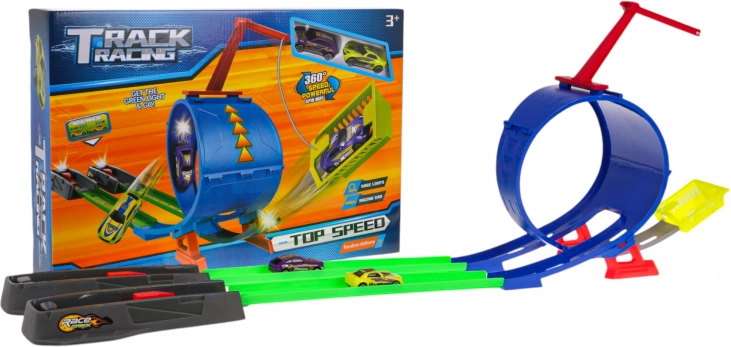 Tor wyścigowy z wyrzutnią Top Speed dla dzieci od 3 lat. Zawiera pętlę 360° i 2 autka.