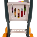 W skład zestawu wchodzi urozmaicony wybór „zakupów” – owoce, warzywa, napoje i pudełka z produktami – który pomaga rozwijać małą motorykę, rozpoznawanie kolorów i kształtów oraz komunikację. Panel z przyciskiem uruchamia migające światełka i wesołe melodie, które motywują dzieci do dalszej zabawy.