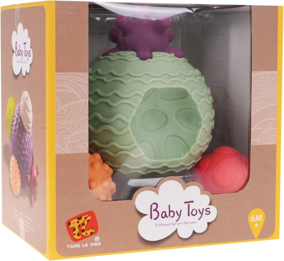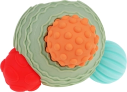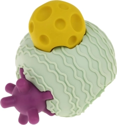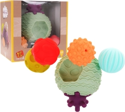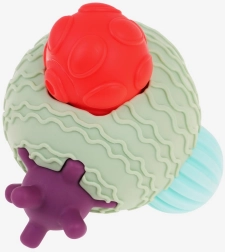 Ta sensoryczna kula to idealny towarzysz kąpieli dla maluchów. Zestaw zawiera dużą kulę oraz cztery mniejsze kule o różnych fakturach i kształtach. Główna kula ma wgłębienia, w które wkłada się mniejsze kule, co pomaga dziecku uczyć się rozróżniania kolorów i kształtów.