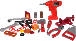 W skład zestawu wchodzi elektryczna wiertarka na baterie z wymiennymi bitami, imbus oraz inne narzędzia, takie jak młotek, śrubokręt i piła. Zestaw pozwala dzieciom na realistyczne odgrywanie pracy z narzędziami, rozwijanie wyobraźni i poznawanie podstawowych zasad pracy.