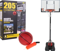 Duża podstawa z możliwością napełnienia wodą lub piaskiem utrzymuje konstrukcję stabilnie w jednym miejscu. W zestawie znajdziesz także piłkę do koszykówki i pompkę, więc nic nie stoi na przeszkodzie, by zacząć grać od razu w domu i na podwórku.