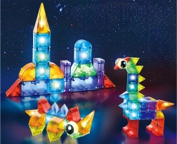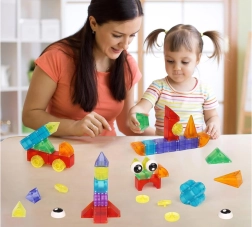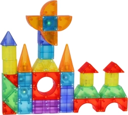 Ten kolorowy zestaw magnetycznych klocków pozwala dzieciom budować auta, wieże, zwierzątka oraz fantazyjne konstrukcje. Elementy z wytrzymałego, bezpiecznego plastiku trzymają się pewnie dzięki wbudowanym magnesom, a moduły świetlne nadają każdemu tworowi efektowny wygląd. Dołączone są instrukcje o różnych poziomach trudności, dzięki czemu dzieci stopniowo rozwijają swoje umiejętności.