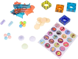 Magnetyczny zestaw konstrukcyjny z 49 elementami łączy tworzenie, efekty świetlne i dynamikę toru kulkowego. Półprzezroczyste niebieskie, pomarańczowe i żółte elementy łatwo się łączą, tworząc konstrukcje 3D z tunelami, mostami i zakrętami. Świecące kulki i podświetlane moduły dodają zabawie efektownego wyglądu i pobudzają ciekawość dzieci.