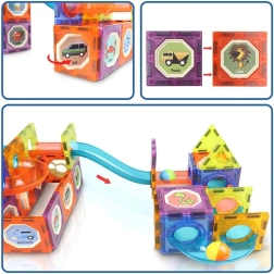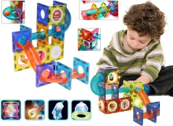 Zbuduj dzieciom świat pełen kolorów i ruchu! Ten kreatywny zestaw magnetycznych elementów z półprzezroczystymi panelami pozwala tworzyć tunele i zjeżdżalnie, po których toczą się kulki. Elementy zestawu są dodatkowo podświetlane, więc zabawa wygląda świetnie także w ciemności. Dzięki silnym magnesom, bezpiecznie zaokrąglonym elementom i nieskończonym możliwościom budowy dzieci spędzą długie godziny na zabawie i rozwijaniu wyobraźni.