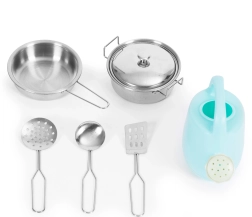 - 7 szt. (garnek, pokrywka, patelnia, 2× łopatka, chochla, konewka)