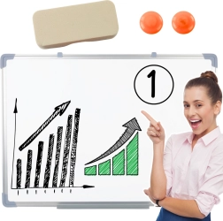 Ta uniwersalna biała tablica łączy magnetyczną i suchościeralną powierzchnię do szybkiego zapisywania notatek, planowania i wizualizacji pomysłów. Lekka, a zarazem wytrzymała konstrukcja z aluminiową ramą chroni krawędzie i prezentuje się elegancko w każdym wnętrzu.