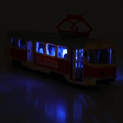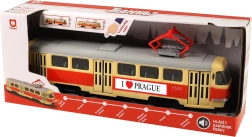 Ten tramwaj ma 28 cm długości, jest wykonany z wysokiej jakości plastiku i porusza się na wolnym biegu. Zabawka umożliwia ręczne otwieranie drzwi, które zamykają się za pomocą przycisku na dachu pojazdu. Przy każdym otwarciu słychać zapowiedzi w języku czeskim, co dodaje autentyczności.