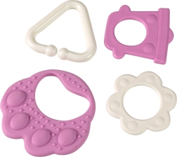 Gryzak w kształcie łapki misia różowy jest zaprojektowany tak, aby był łatwy do uchwycenia małą dziecięcą rączką oraz bezpieczny bez ostrych krawędzi.
