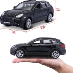Ten model Porsche Cayenne Turbo jest częścią prestiżowej kolekcji marki Bburago, znanej z doskonałego wykonania i wysokiego poziomu detali. Wykonany z metalu z plastikowymi elementami, co gwarantuje jego długowieczność, trwałość i autentyczność.