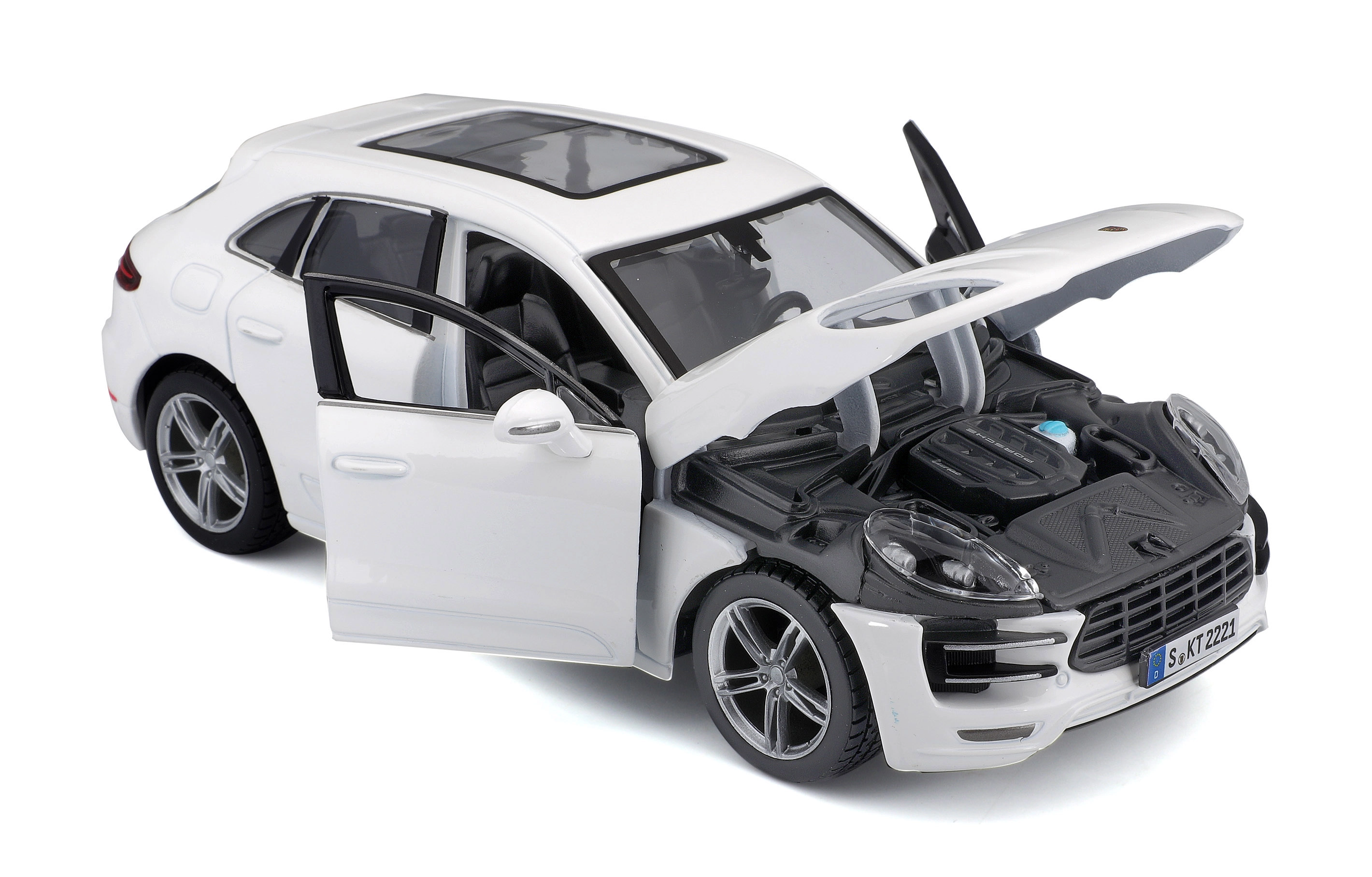 Dopracowany model Porsche Macan, który zachwyca szczegółami, takimi jak otwierane drzwi i maska.