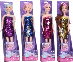 Ubieraj, czesz i ruszaj na miasto po zabawę! Ta stylowa lalka z kolorowym pasemkiem we włosach i sukienką z cekinami, które zmieniają kolory po przejechaniu ręką, jest idealna dla każdej małej damy.