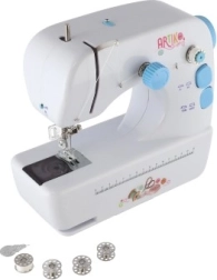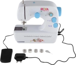 Maszyna jest zasilana za pomocą baterii AAA 4x, które nie są częścią zestawu, lub zewnętrznego źródła zasilania, które jest dołączone do zestawu. Zestaw zawiera również szpulki i zapasową igłę, co umożliwia bezproblemowe szycie.