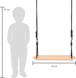 Ta huśtawka pozwoli ci cieszyć się zabawnymi chwilami na świeżym powietrzu lub w domu. Solidne liny są regulowane na wysokość, a metalowe pierścienie ułatwiają szybkie zawieszenie. Wykonana z masywnego drewna i trwałych lin, jest idealna także dla dorosłych dzięki wysokiej nośności.