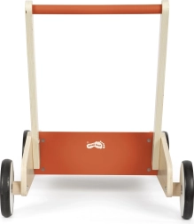 Minimalistyczny design w czerwieni i naturalnym drewnie świetnie wpasuje się do pokoju dziecięcego i przedszkola. Pchacz wspiera rozwój równowagi, motoryki dużej i samodzielności. Wymiary 62 × 40,5 × 45,5 cm są idealne dla dzieci od 12 miesięcy.