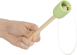 Solidna drewniana rączka i wytrzymały sznurek zapewniają długą żywotność nawet przy częstej zabawie.