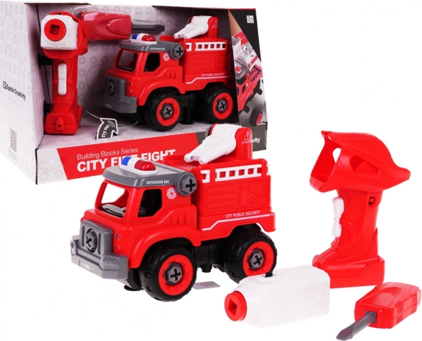 Ten rozkładany wóz strażacki łączy zabawę w budowanie z emocjonującą akcją. Dzięki dołączonym manualnemu śrubokrętowi i wkrętarce na baterie mali technicy poćwiczą montaż poszczególnych elementów, rozwijając motorykę małą i wyobraźnię. Po włożeniu panelu sterującego auto może jeździć samo do przodu lub do tyłu, a także można nim sterować jak samochodem RC.