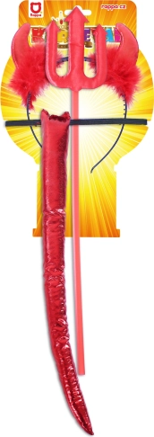 Uroczy diabelski zestaw dla dzieci zawiera opaskę z rogami, ogon oraz różdżkę w kształcie wideł. Idealny dodatek na imprezę mikołajkową, karnawał lub szkolną akademię. Łatwy do założenia, to lekki i wygodny wybór dla każdego małego diabełka.