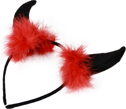 Zmień się w uroczo figlarną diablicę w mgnieniu oka! Te diabelskie rogi z filcu na satynowej opasce są ozdobione miękkimi piórami i świetnie trzymają się we włosach. Idealny dodatek na karnawał, Halloween i imprezy tematyczne.