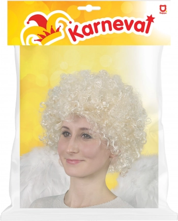 Krótka blond peruka z afro loczkami dopełni Twój anielski kostium w kilka sekund i zapewni nieprzeoczalny wygląd.