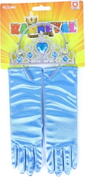 Z tym zestawem księżniczki łatwo dopełnisz każdy kostium i fantazyjną stylizację. Srebrna korona jest zdobiona błyszczącymi niebieskimi kamieniami, które pięknie odbijają światło, a delikatne niebieskie rękawiczki dodają całej stylizacji elegancji. Idealny na karnawał, przyjęcia, tematyczne imprezy lub domowe zabawy w bajki.