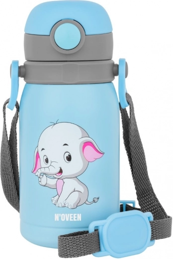 Praktyczny dziecięcy bidon o pojemności 300 ml w niebieskim kolorze ze słonikiem jest idealny na ciepłe i zimne napoje. Dzięki specjalnemu uchwytowi łatwo się go przenosi, a dzieci wygodnie z niego piją.