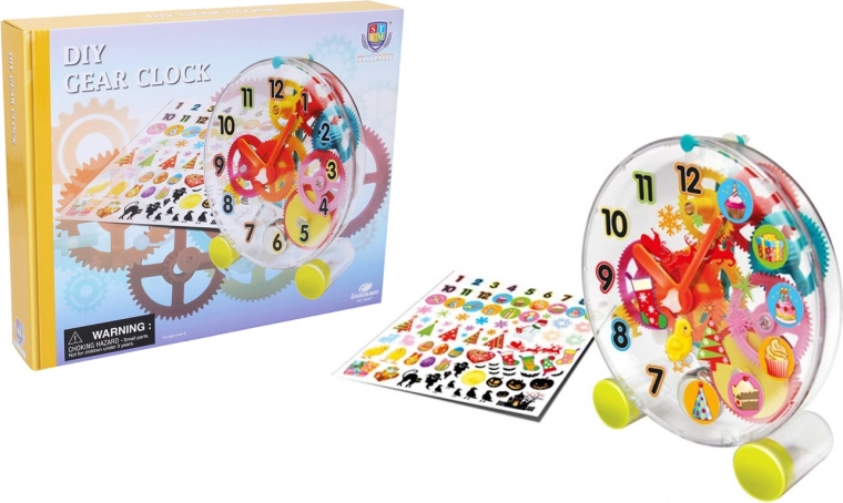 Zegar po złożeniu działa na bazie mechanicznego mechanizmu, który jest zarówno edukacyjny, jak i zabawny. W zestawie znajdują się dekoracyjne naklejki, dzięki którym dopasujesz design do swoich upodobań.