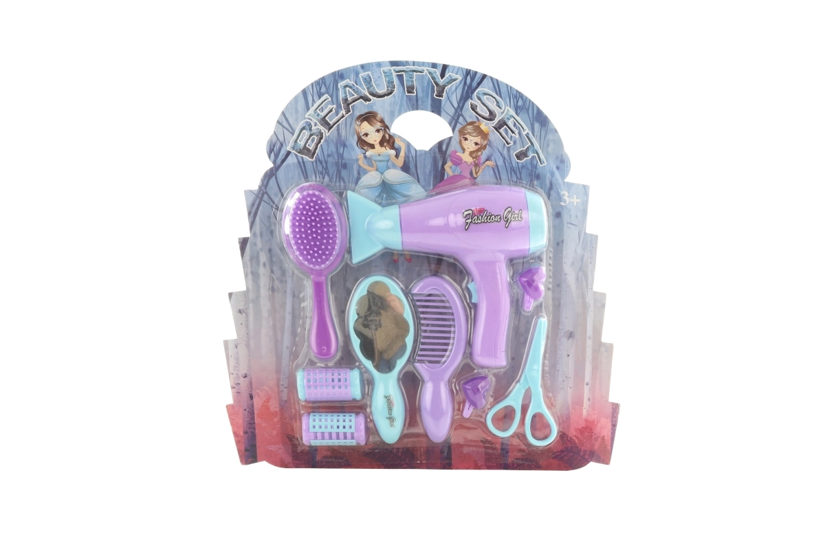 Zabawny zestaw fryzjerski dla małych stylistów od 3 lat zawiera suszarkę na baterie o wielkości ok. 16 × 15 cm, grzebień, szczotkę, 2 wałki, 2 spinki oraz nożyczki. Wszystko wykonane z wytrzymałego plastiku i przygotowane do bezpiecznej zabawy dla dzieci. Suszarka działa na 2 baterie AA.